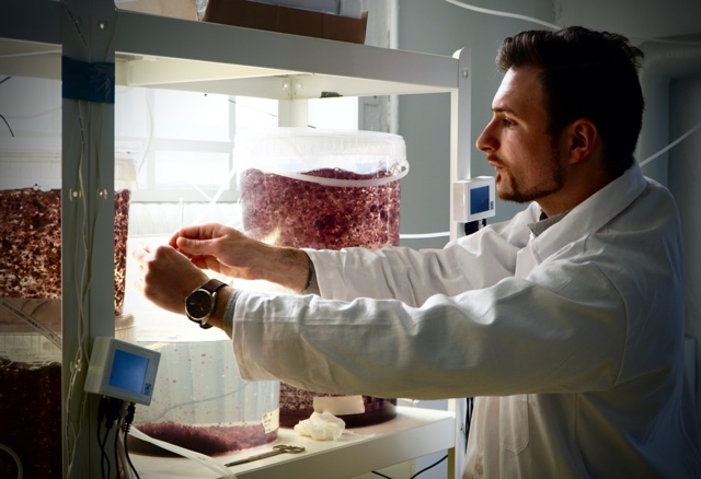 – Vi bedriver forskning på Karolinska Institutet i Stockholm för att optimera rödalgens näringsvärde och dessutom utveckla vår egen teknologi för att optimera tillväxten laboratoriemiljö. Därtill har vi precis öppnat en första fabrik i Lysekil där vi har börjat producera algen via vårt landbaserade odlingssystem, säger Linus Holmsäter, CCO på Volta Greentech.